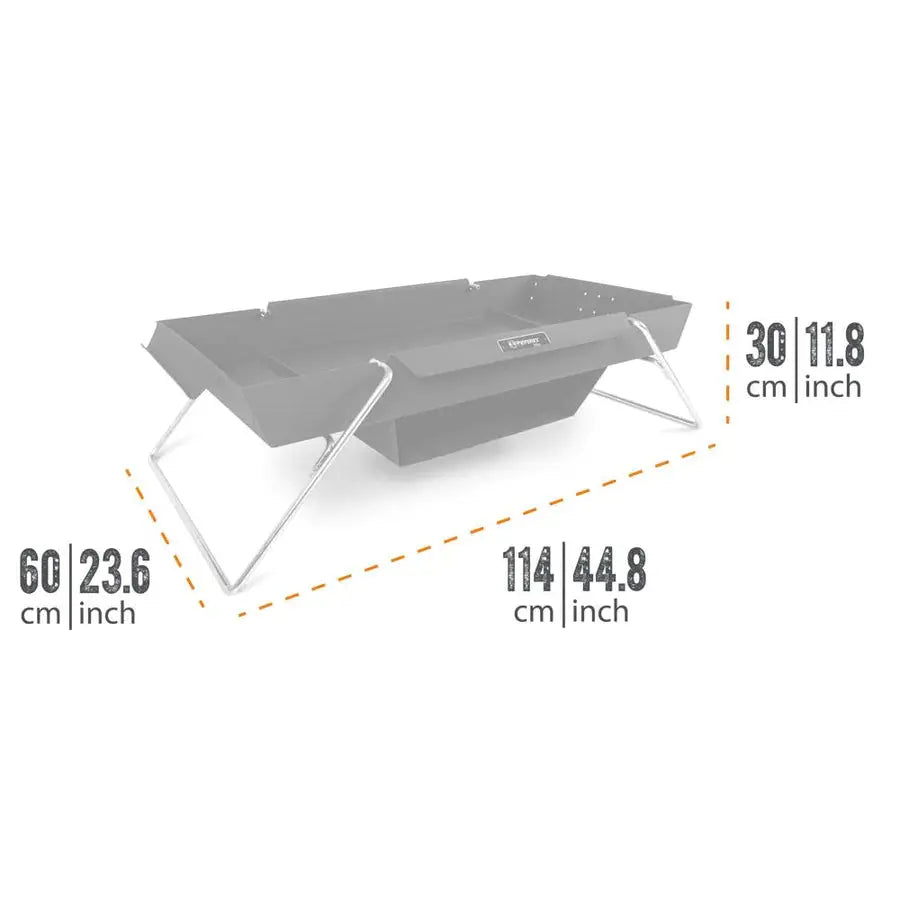 When you assemble the fire stand for the first time, you equip it with the baking compartment and then you can transport it in the car or van to wherever you want to start your outdoor adventure. The sturdy legs can be easily dismantled without tools, so that you can store them in the tray to save space after cleaning the fire stand from ash residues. Fits fire bridge FRK1 (sold separately)