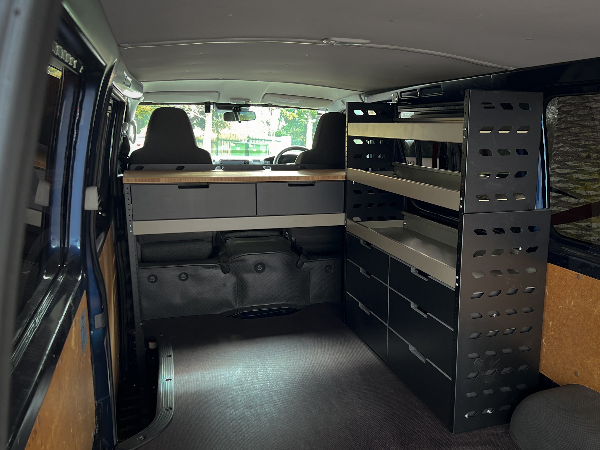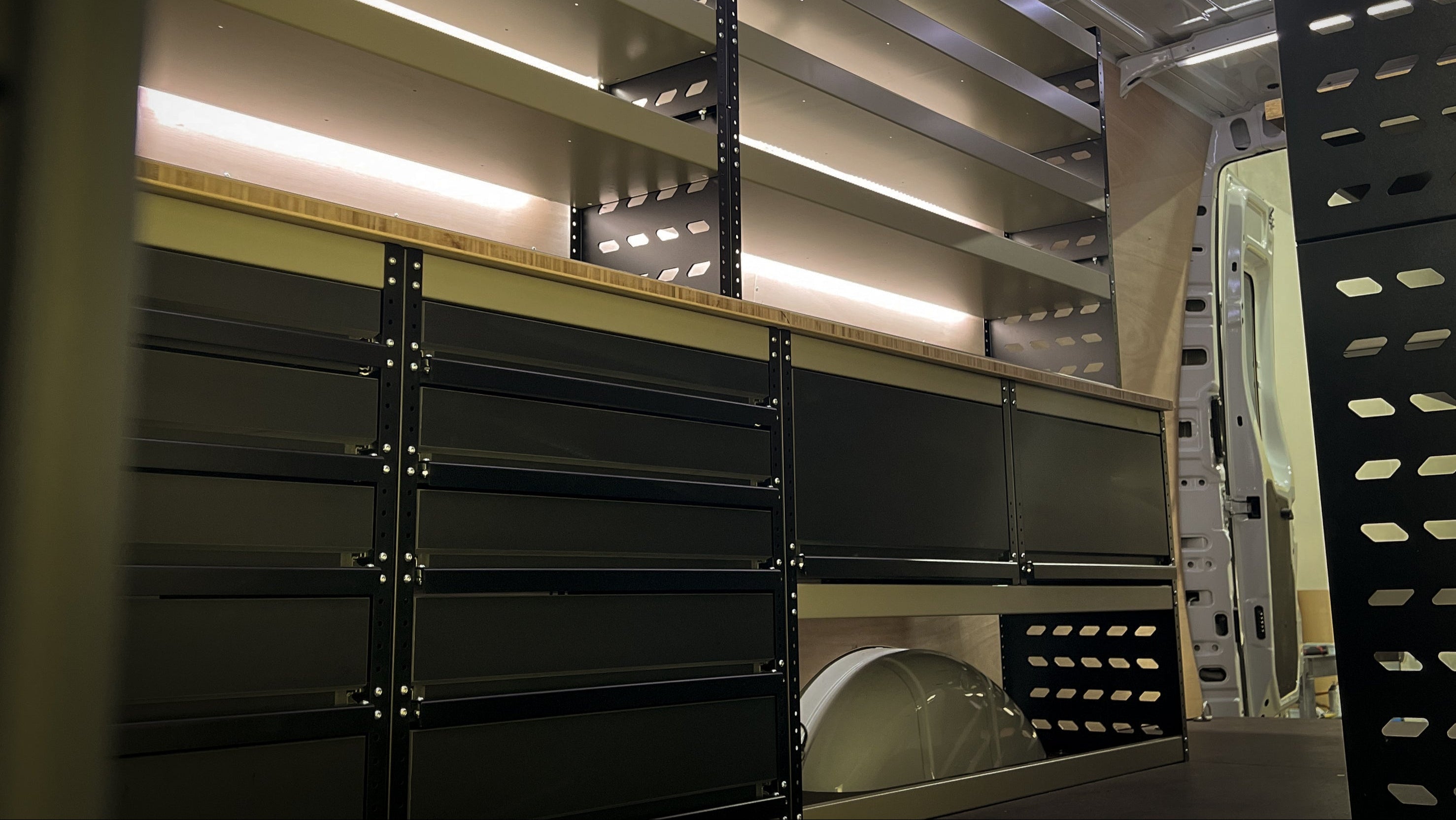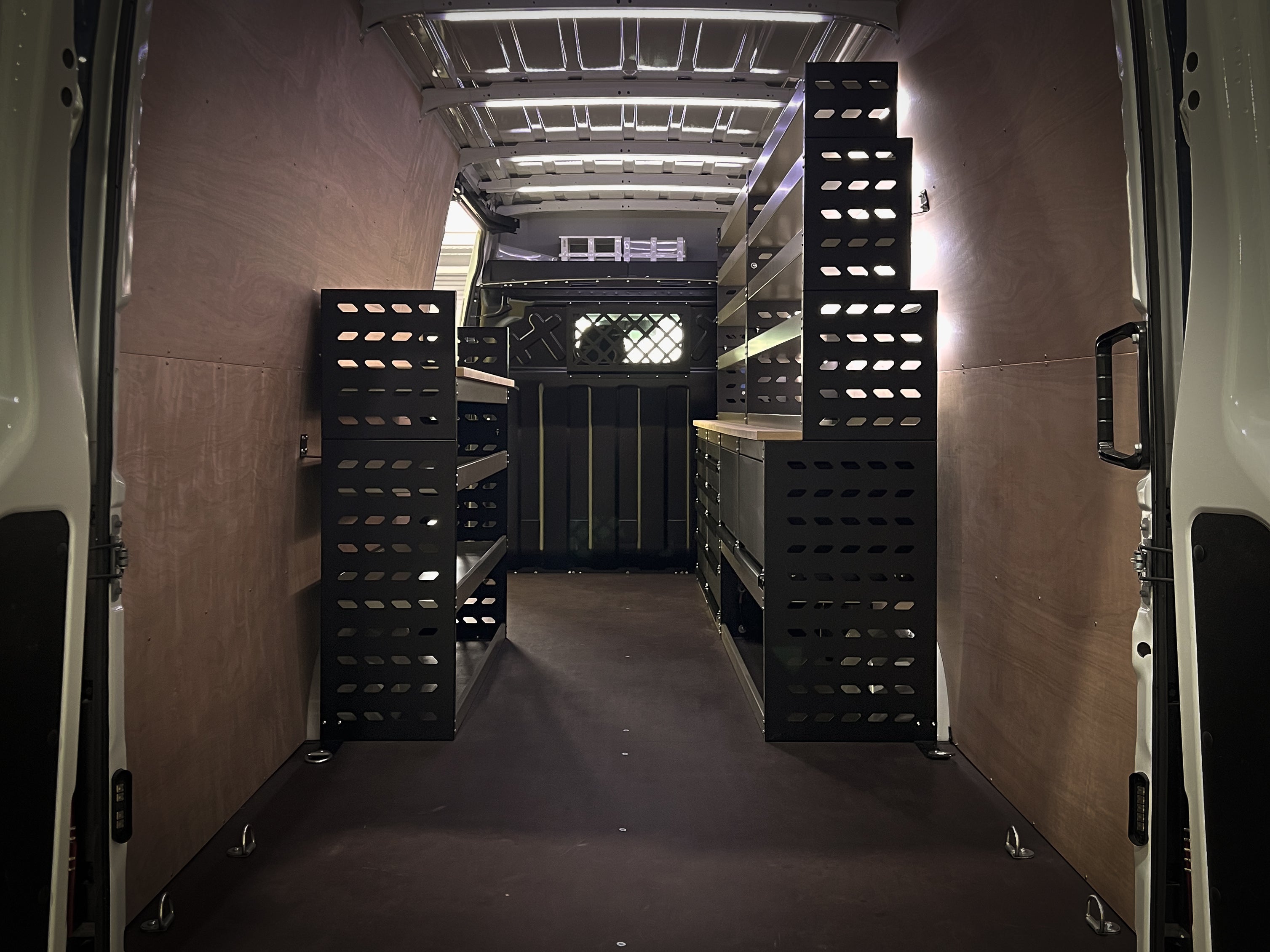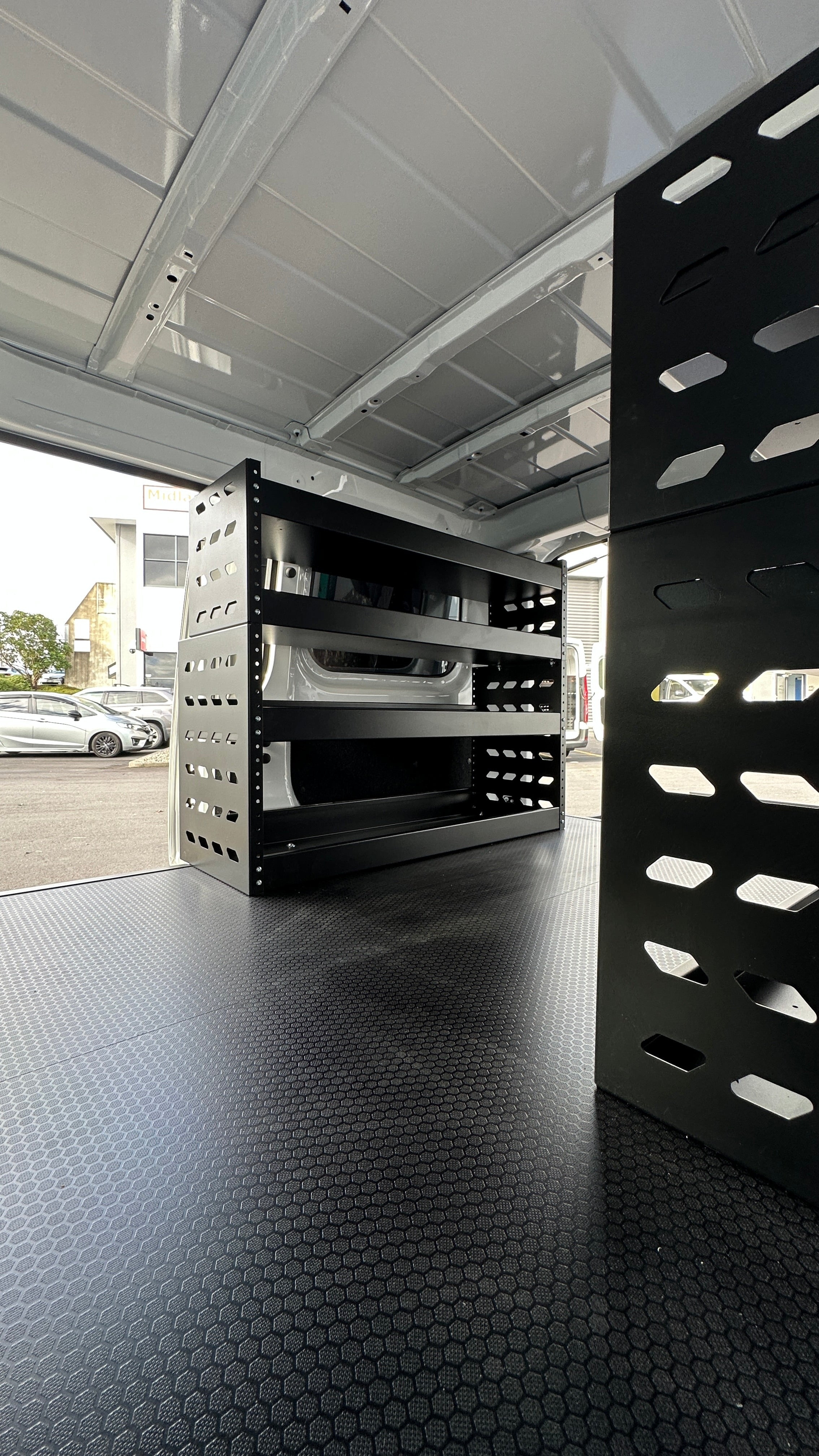 Unlike van racking made from inferior plywood or MDF, ECOSTACK is crafted from 1.2mm steel, precision-cut, folded, and finished with a tough, scratch-resistant powder coat. This makes it incredibly strong, hard-wearing, and professional-looking — a fit-out that performs as good as it looks.