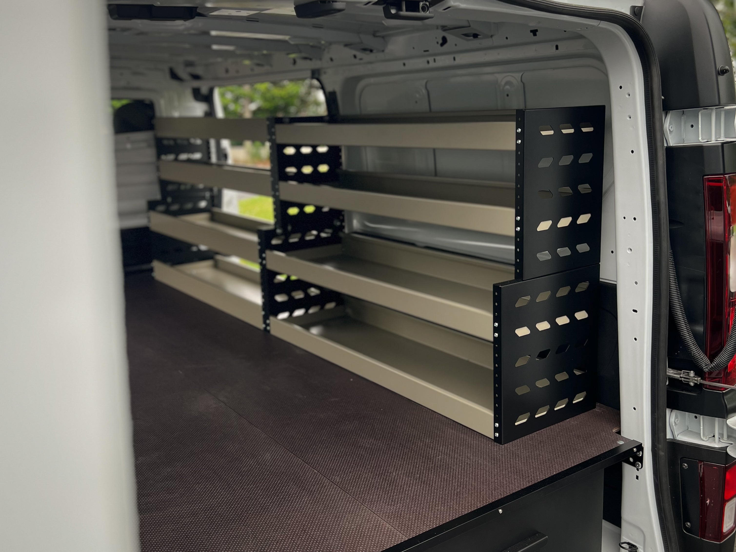 With height adjustability in 25mm increments, ECOSTACK allows you to tailor each shelf to perfectly suit your tools, equipment, or products — maximising space and efficiency in your van.