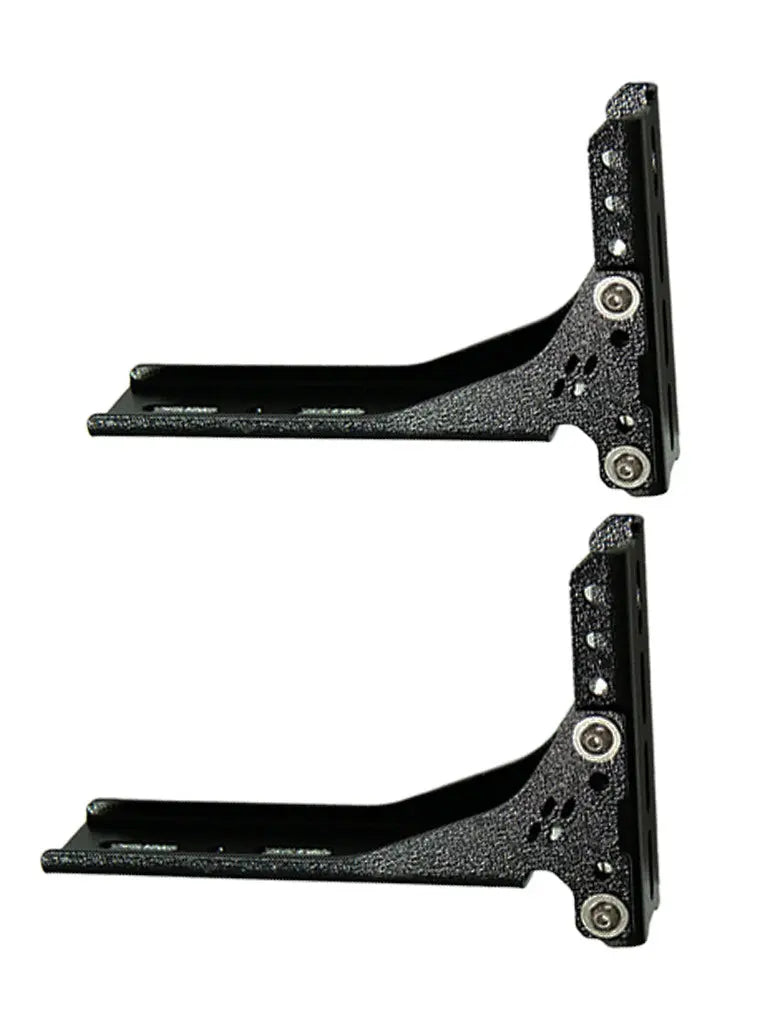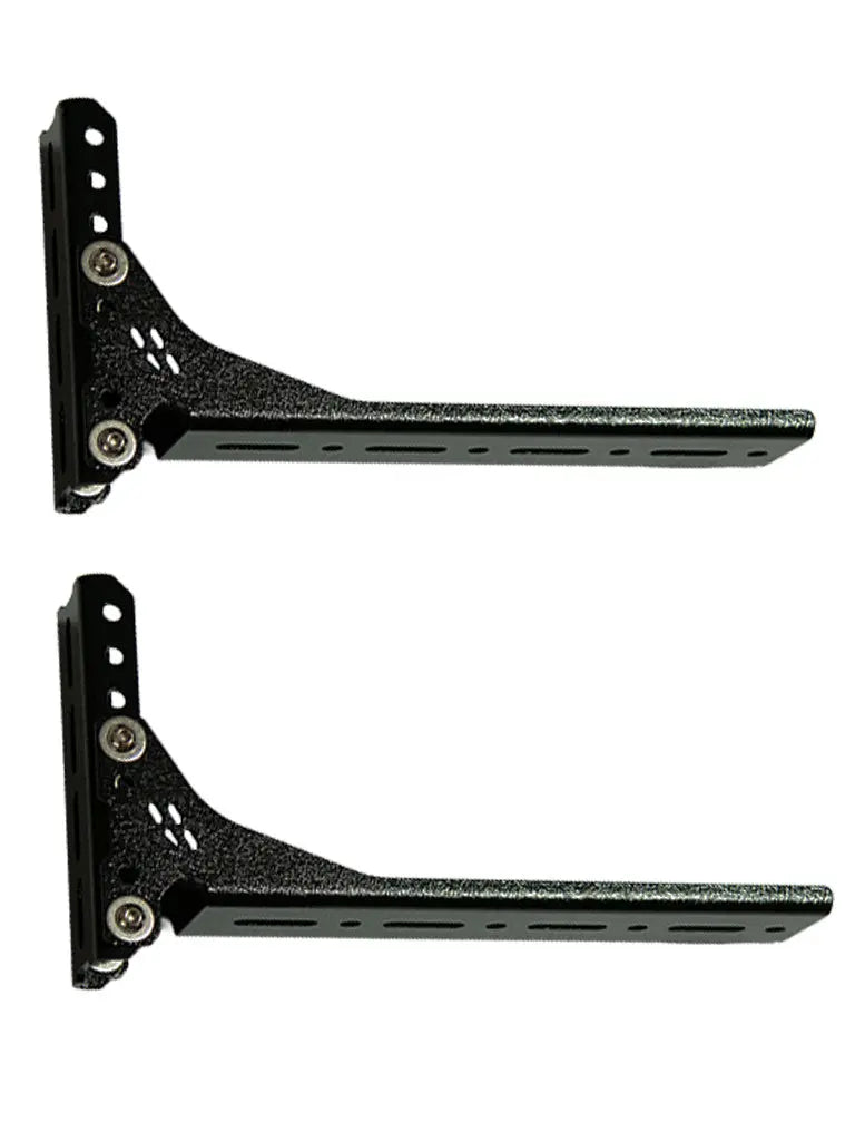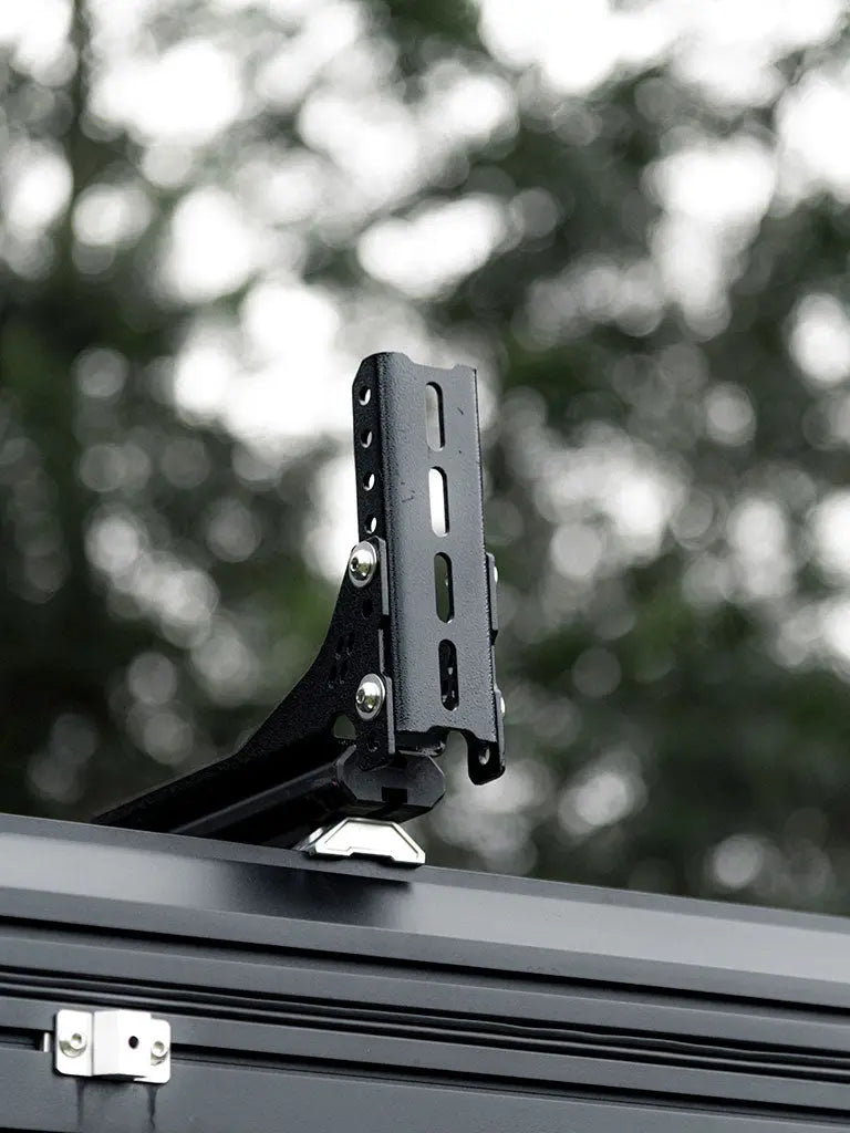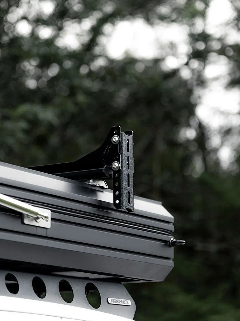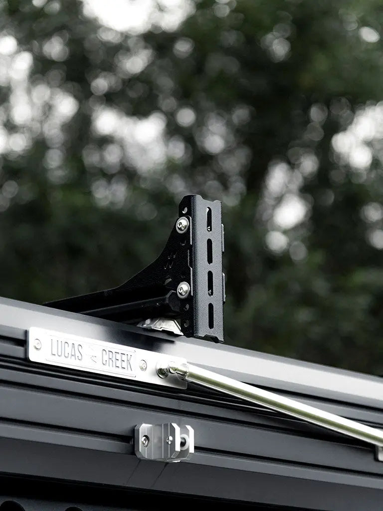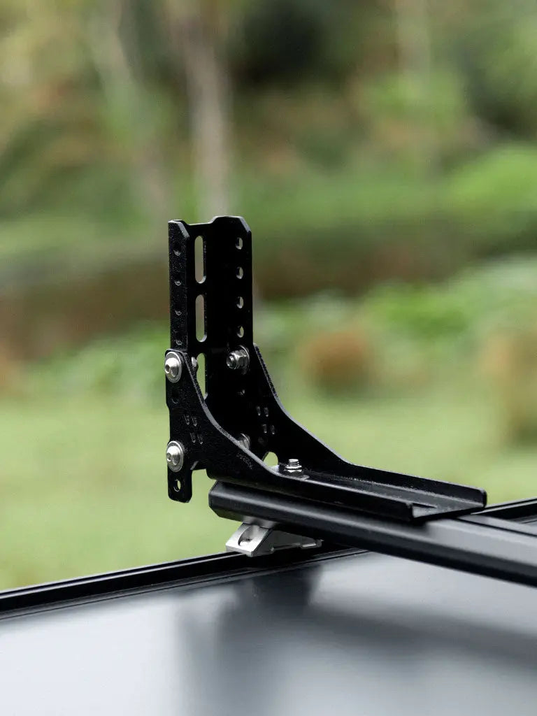 Versatile adjustable-height awning brackets designed to secure your awning to popular vehicle racks and trays. These powder-coated stainless steel mounts allow you to customize your awning height as your vehicle setup changes—whether you've added larger tires, installed a suspension lift, or switched vehicles entirely. Featuring a multi-slot pattern compatible with most popular awnings, these New Zealand-designed brackets deliver exceptional strength. Choose between short brackets for cross-car slats/rails or long brackets for lengthwise platforms like Rhino-rack systems. Proudly designed by our Lucas Creek team for durability and flexibility. Sold in pairs.